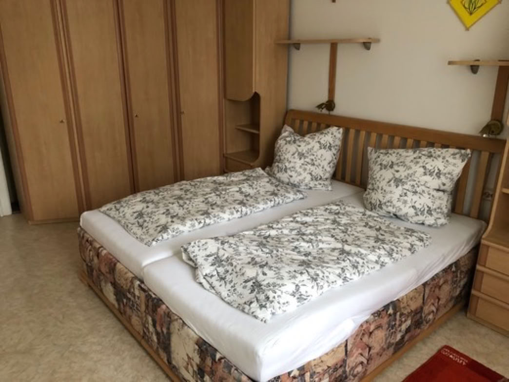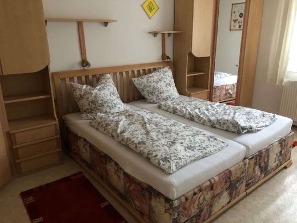 Das kleinere Schlafzimmer (14 qm) ist ebenfalls mit einem großen Doppelbett versehen.