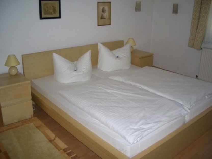 Das kleinere Schlafzimmer (14 qm) ist ebenfalls mit einem großen Doppelbett versehen. Auch hier befindet sich ein Kleiderschrank.